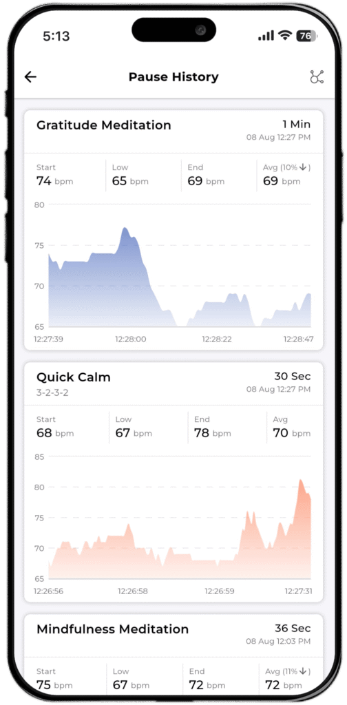 - Pik, IndiaI love the feature of graphing my heart rate during my daily meditation. I get immediate, empirical feedback, a graph that is easy to compare with other days in the list. It helps me identify days that are starting with more and less calm.